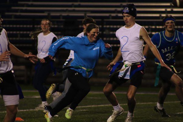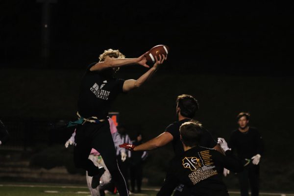 Tuesday, Oct. 21, was a night full of camaraderie, competition and fun at Perkins Stadium, as intramural flag football players competed against each other in three different brackets to determine team winners. Those lucky teams then walked away with a free championship shirt, being able to show their win on and off campus.